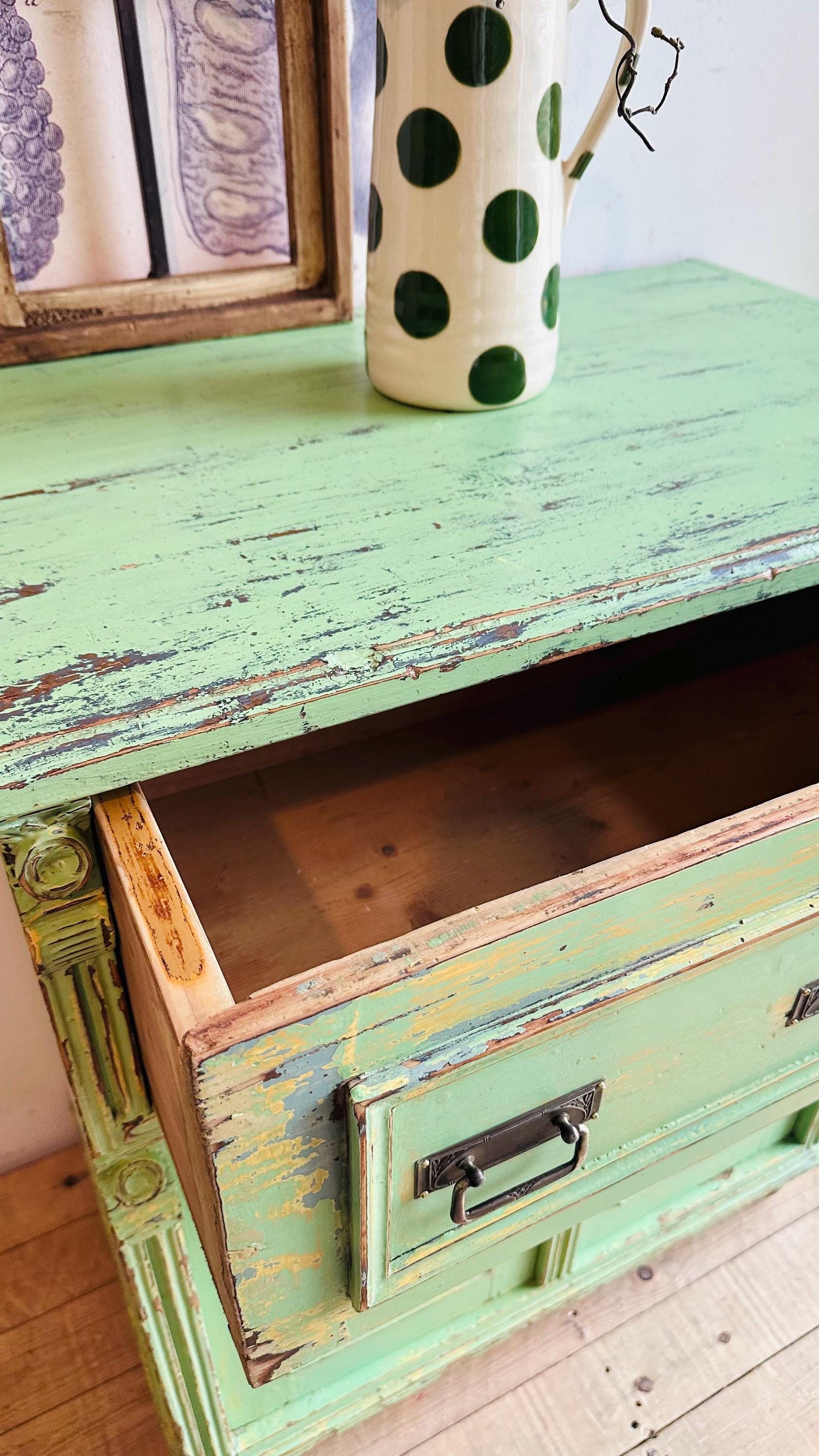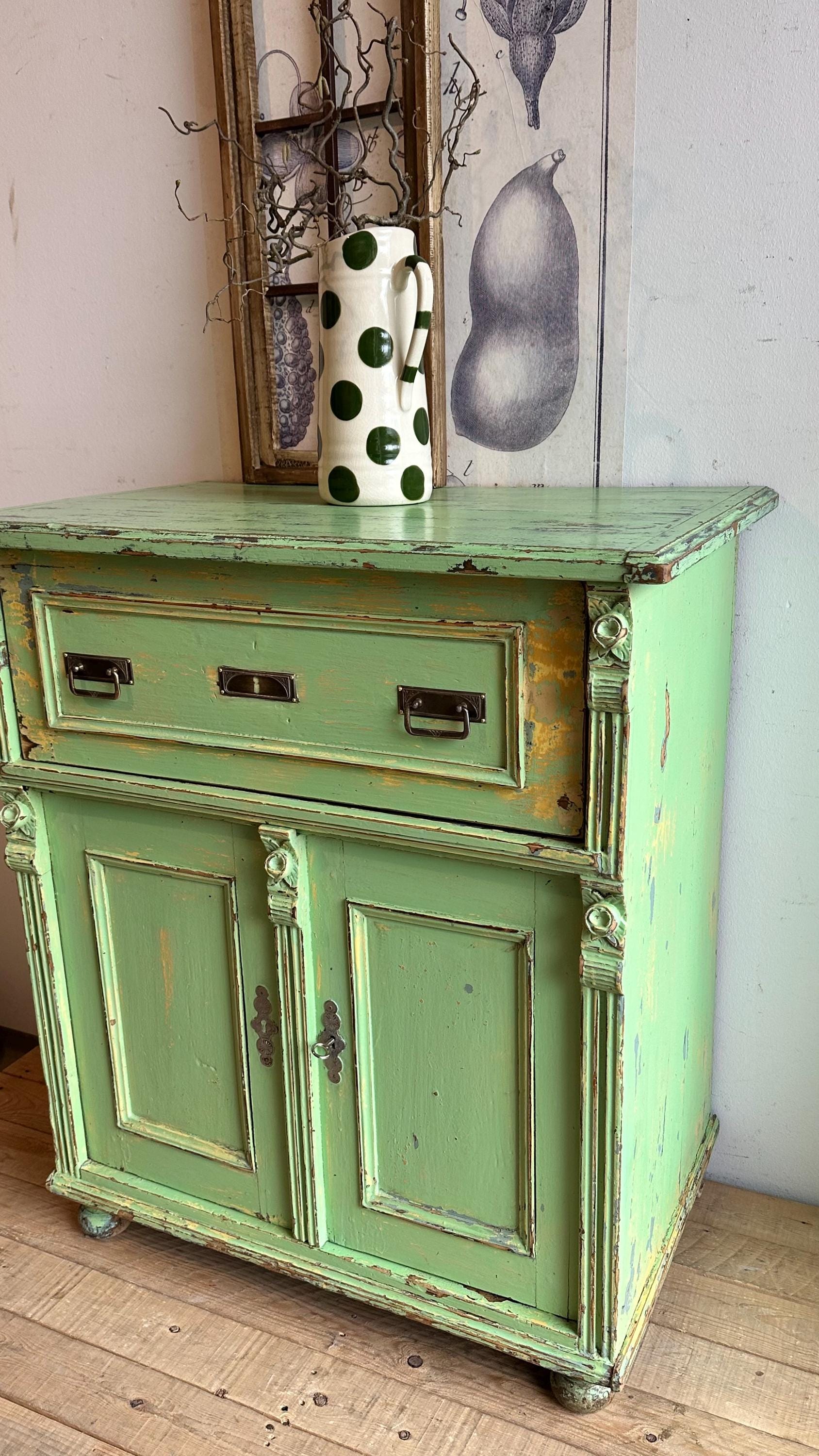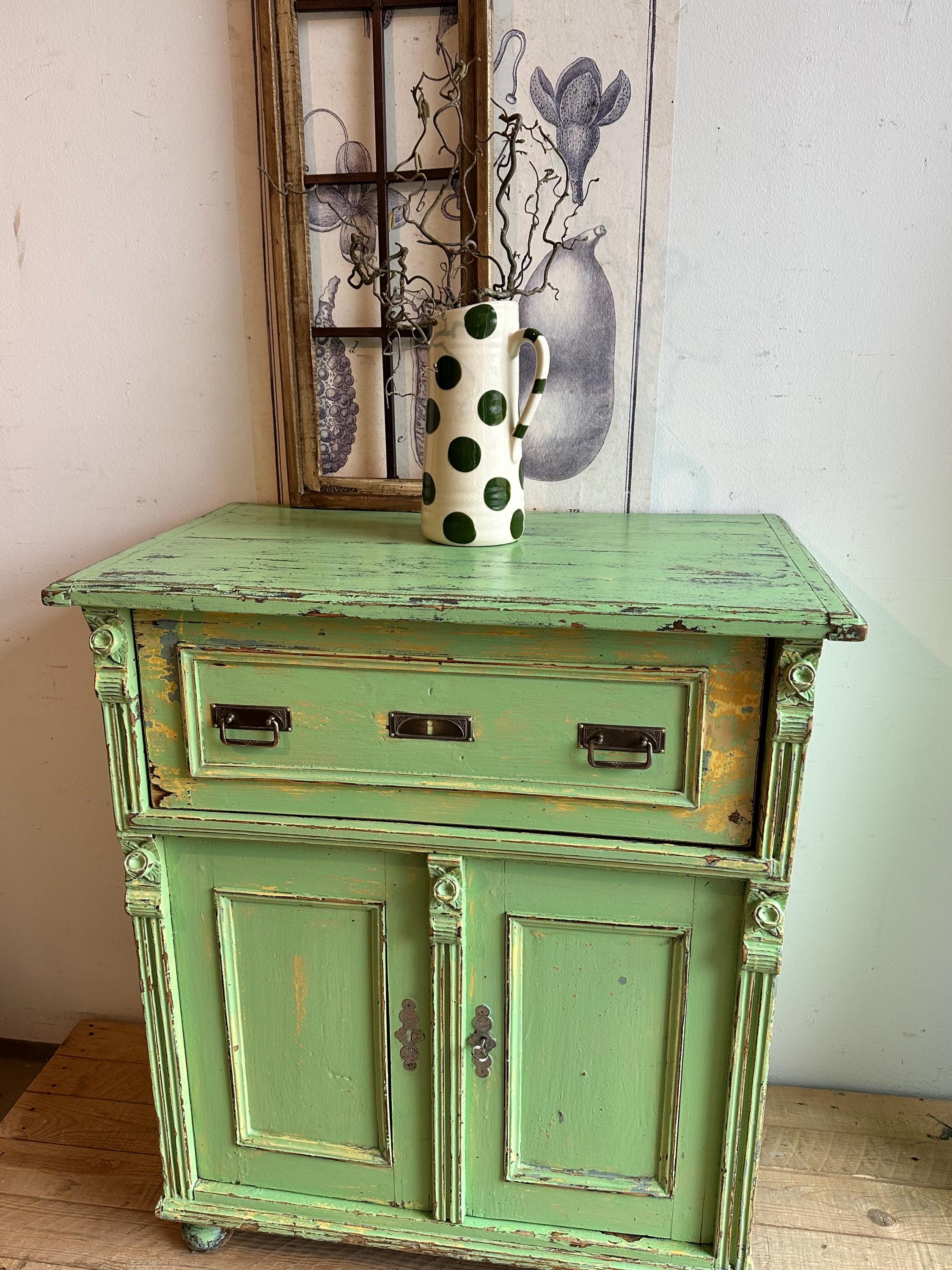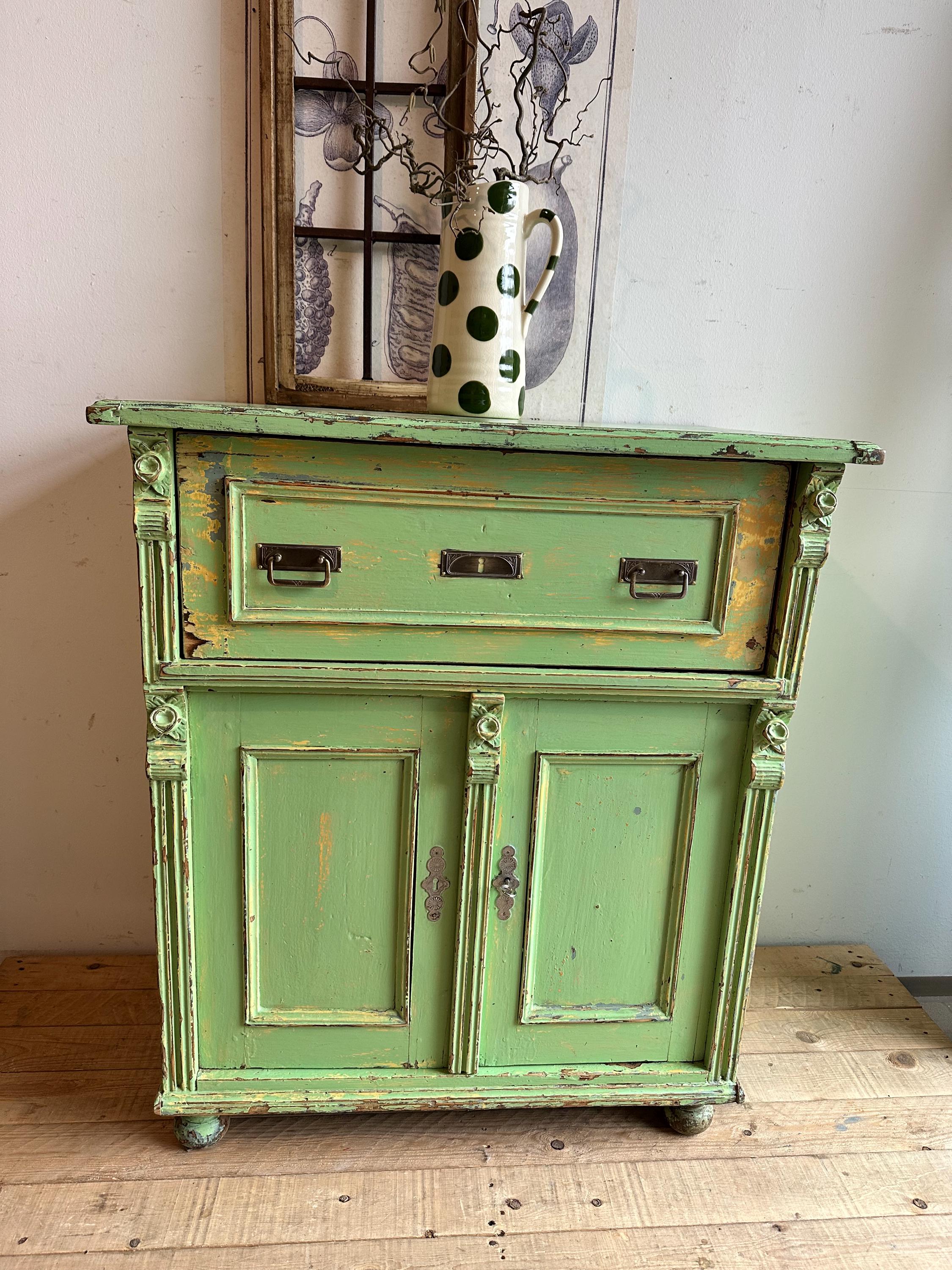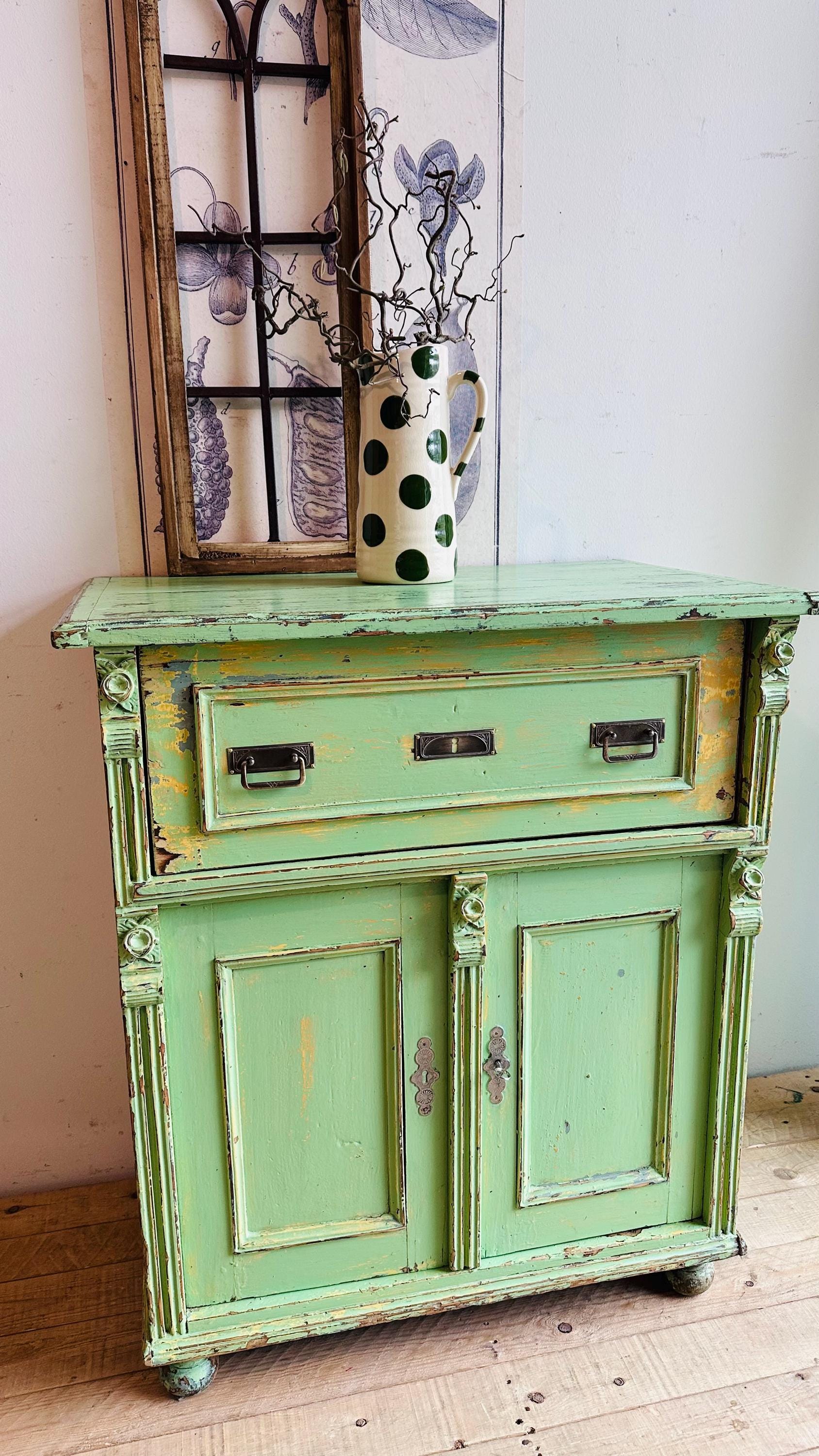 Greta's spring moment - this chest of drawers is a delight for the senses, for happy moments - refreshing, neutral, and full of detail - fall in love with an old beauty for beautiful moments in your home - let this sight fill you with moments of happiness every day - an old, comfortable cabinet with a dreamy patina from the old paintwork, the paint has been restored to a new, old shine and sealed with antique wax - pure nature and freshness for your living space ❤️