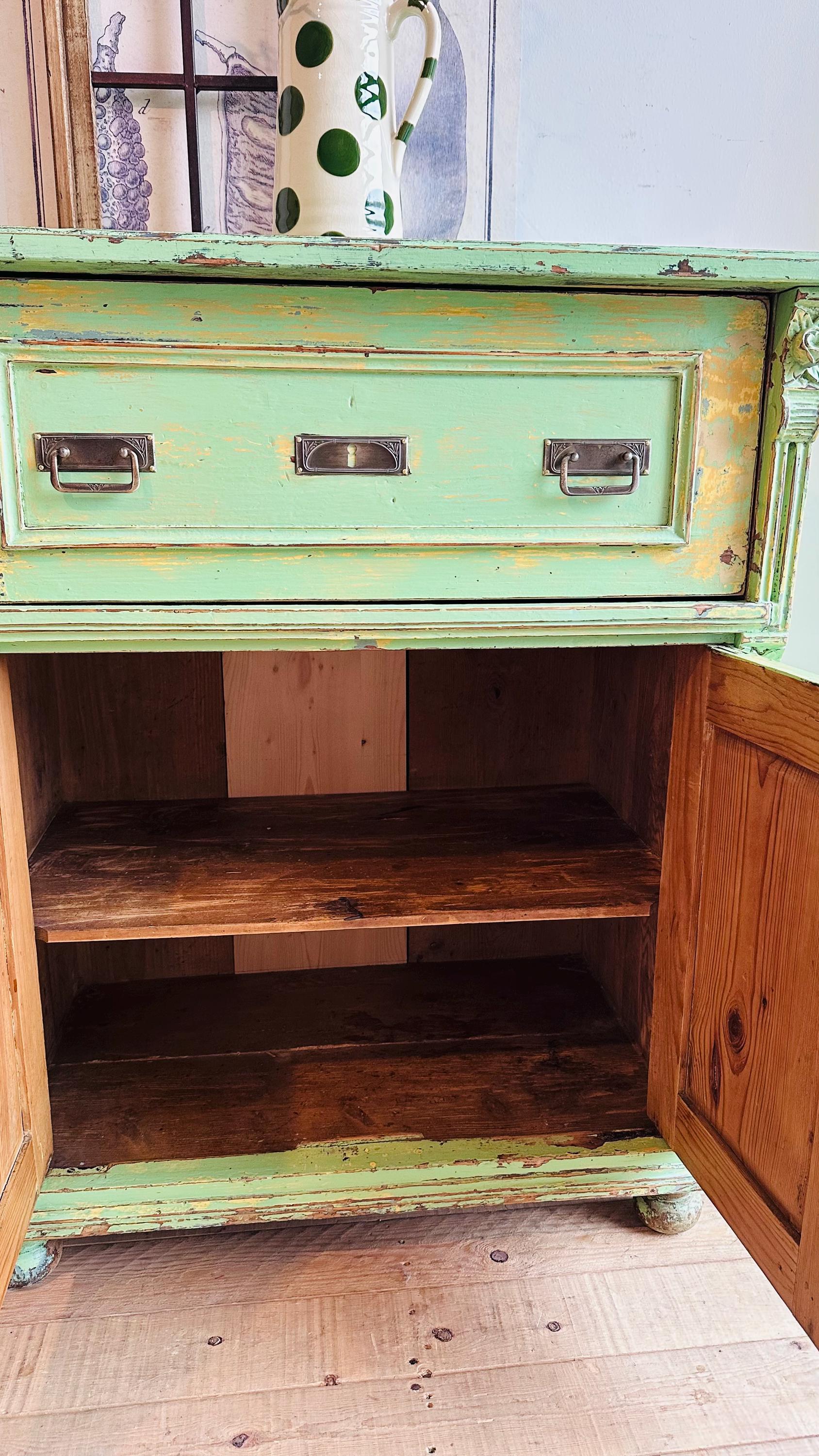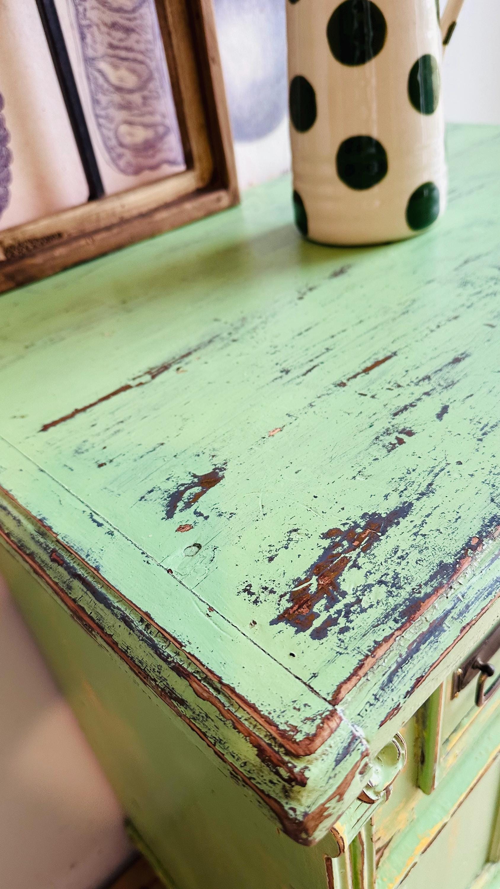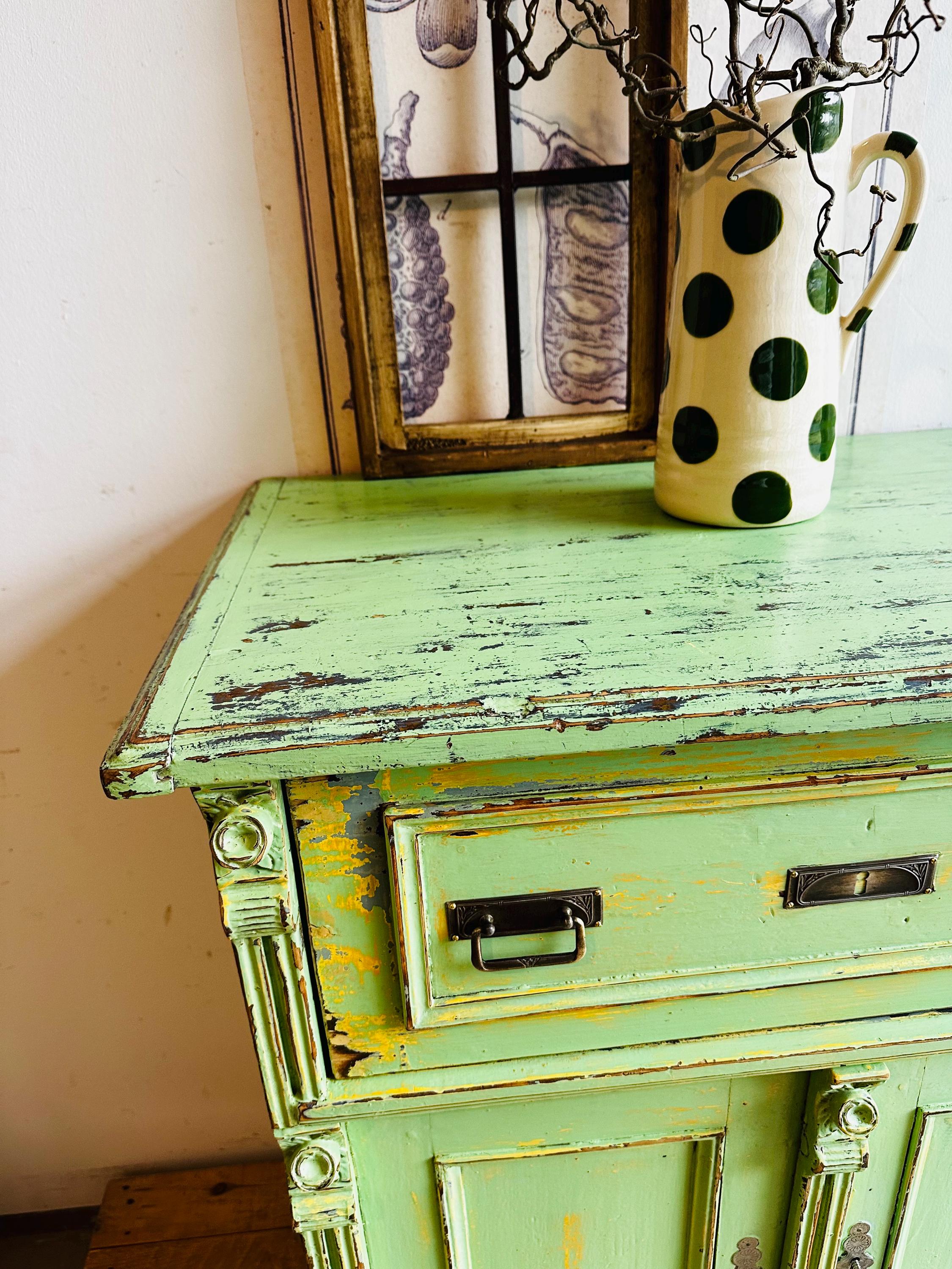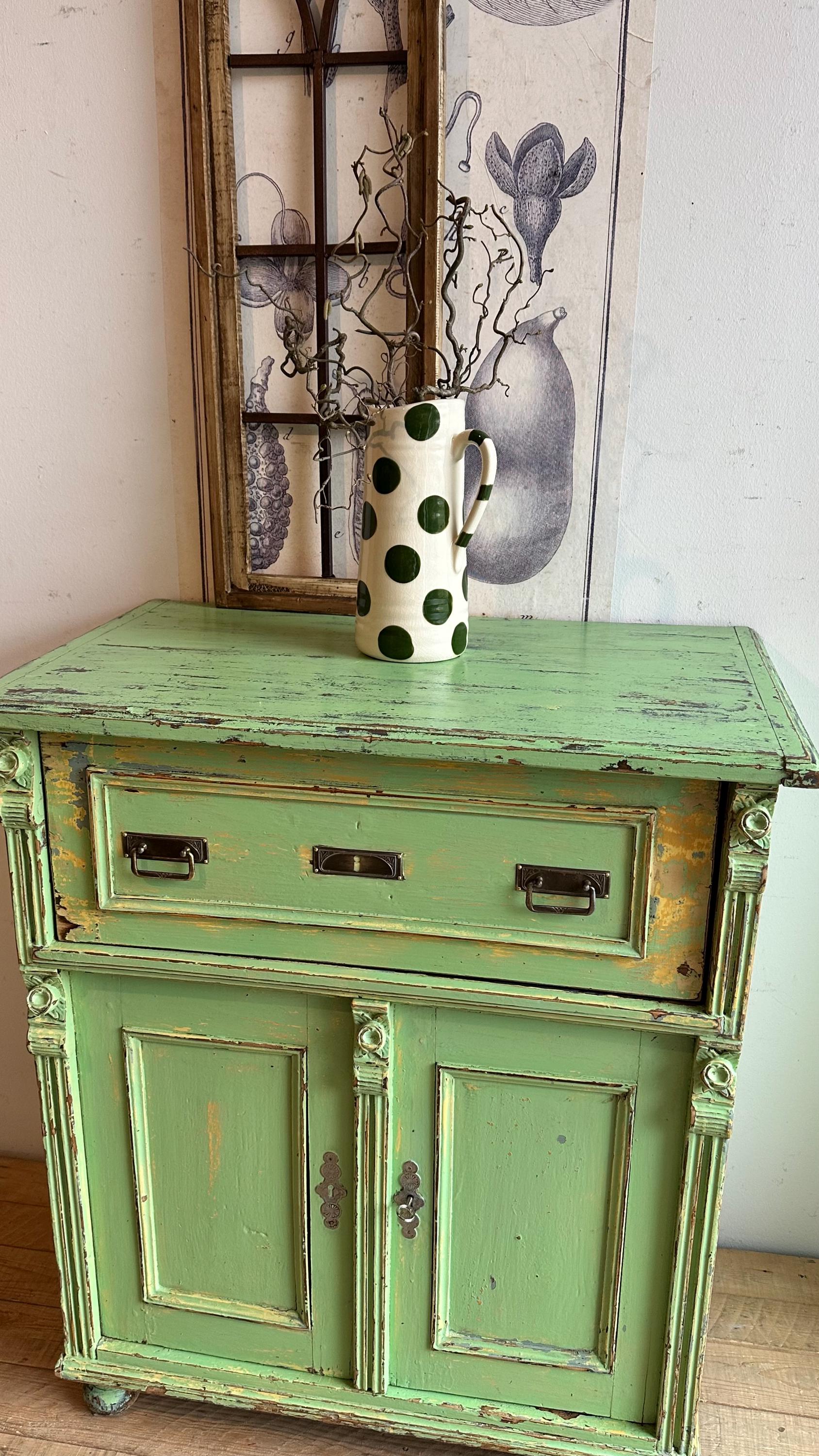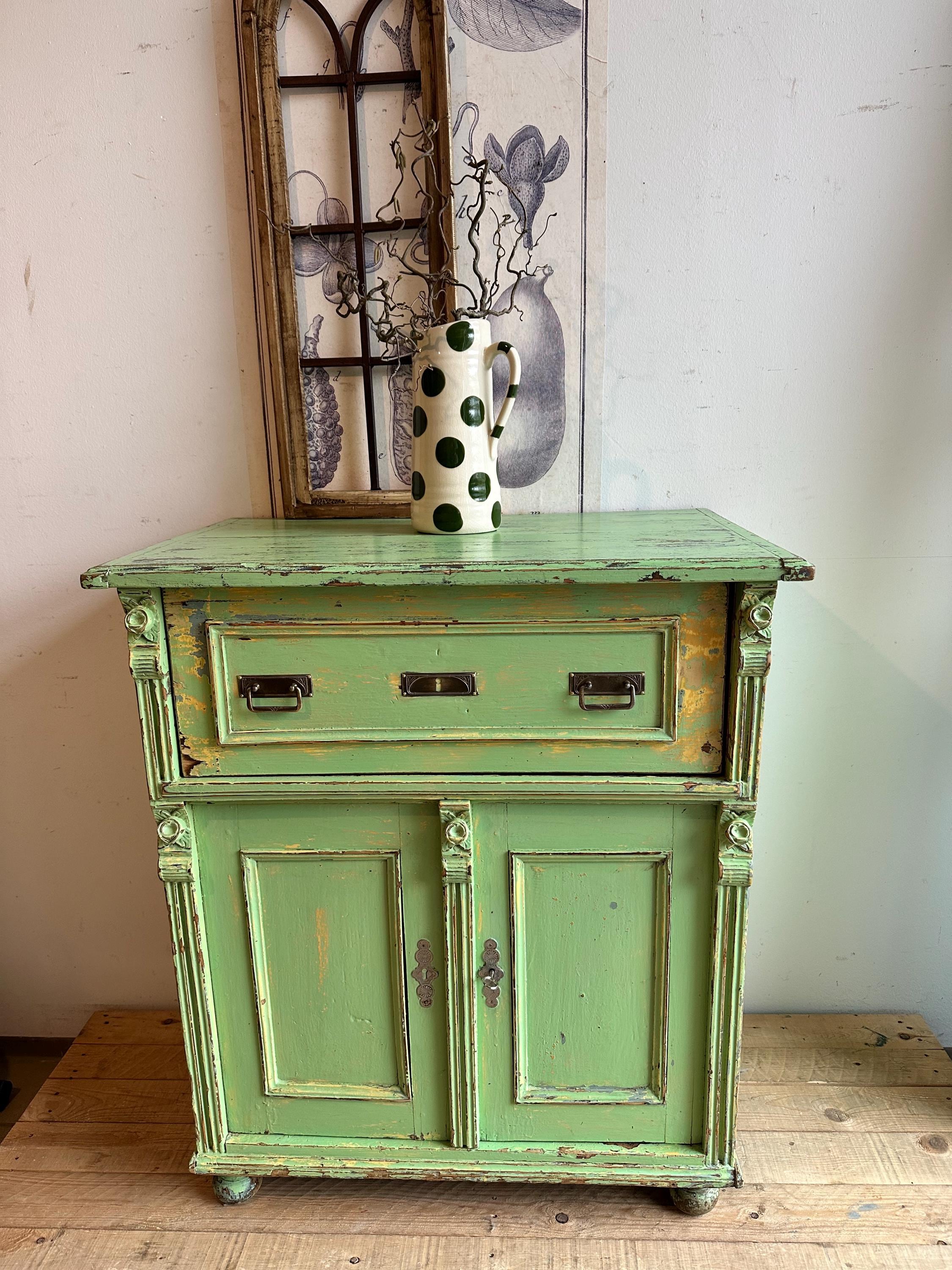 Greta's spring moment - this chest of drawers is a delight for the senses, for happy moments - refreshing, neutral, and full of detail - fall in love with an old beauty for beautiful moments in your home - let this sight fill you with moments of happiness every day - an old, comfortable cabinet with a dreamy patina from the old paintwork, the paint has been restored to a new, old shine and sealed with antique wax - pure nature and freshness for your living space ❤️