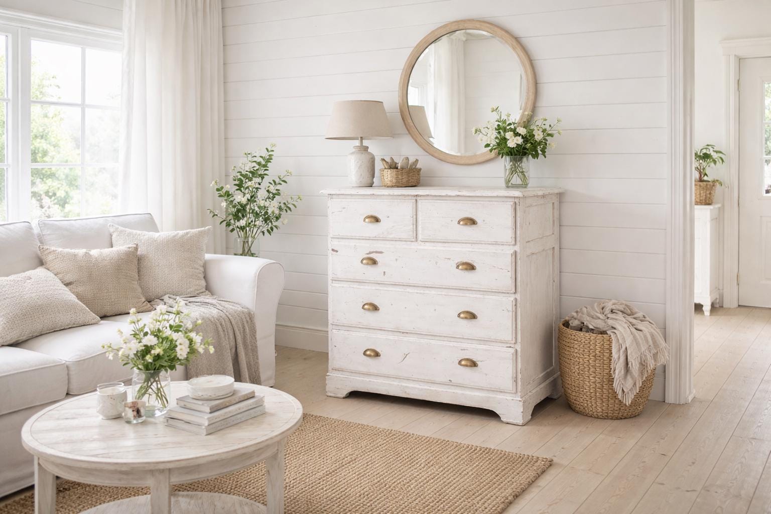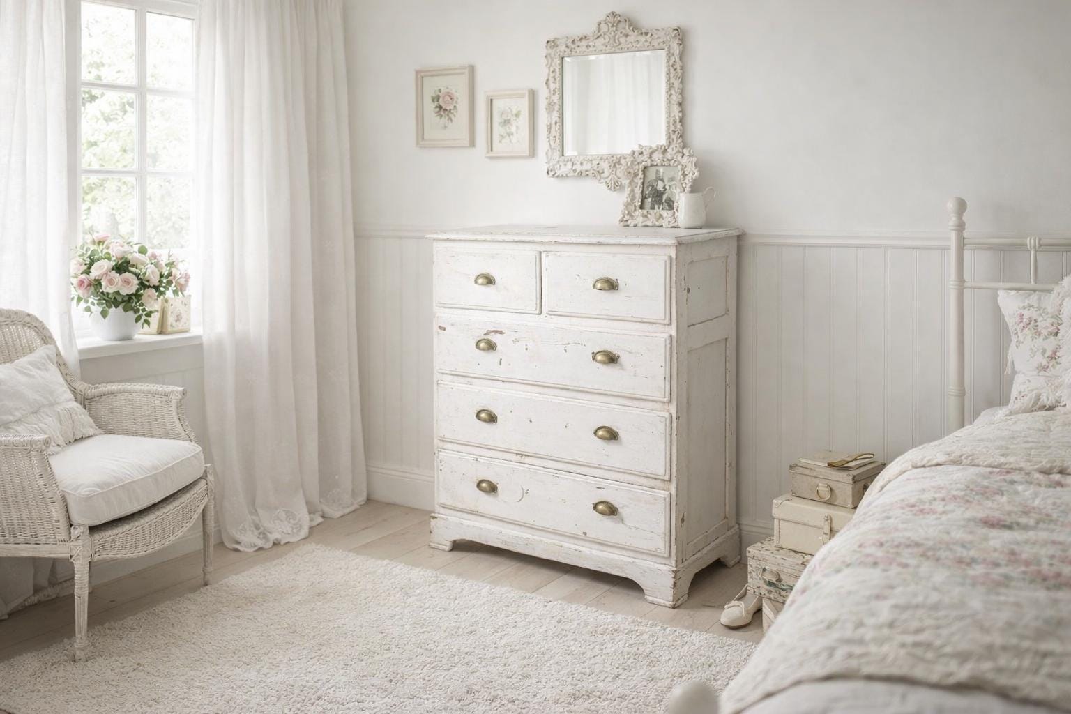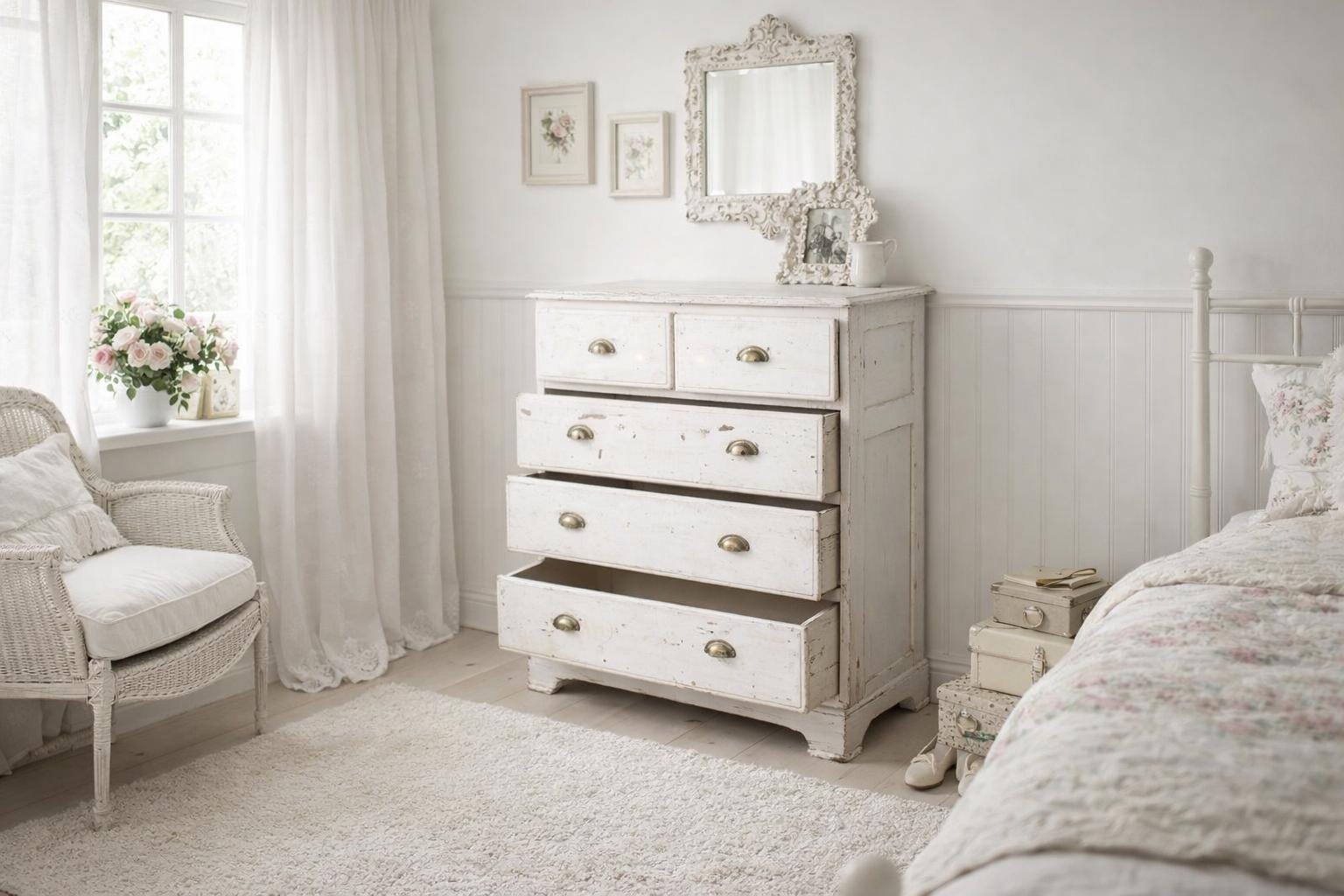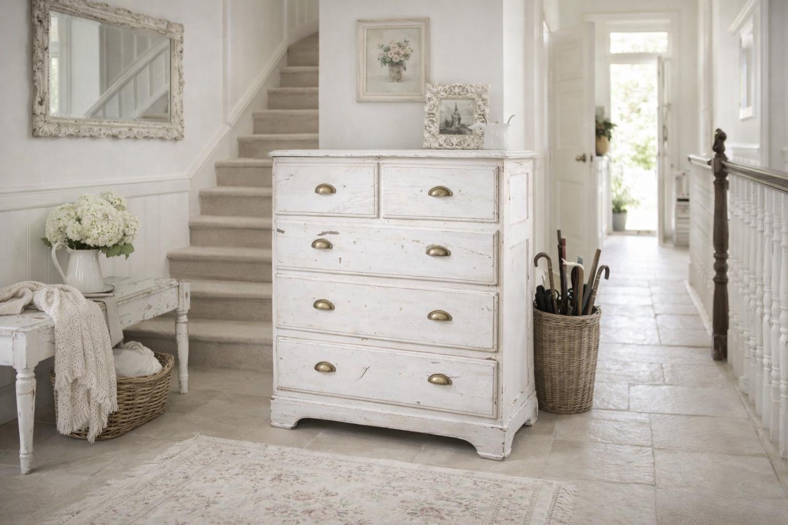 The white chest of drawers with its natural, worn patina is a unique piece of furniture made of solid wood, sturdy with all its nooks and crannies… a very special treasure awaits its use… in every room it will be an eye-catcher and not an off-the-shelf piece of furniture.