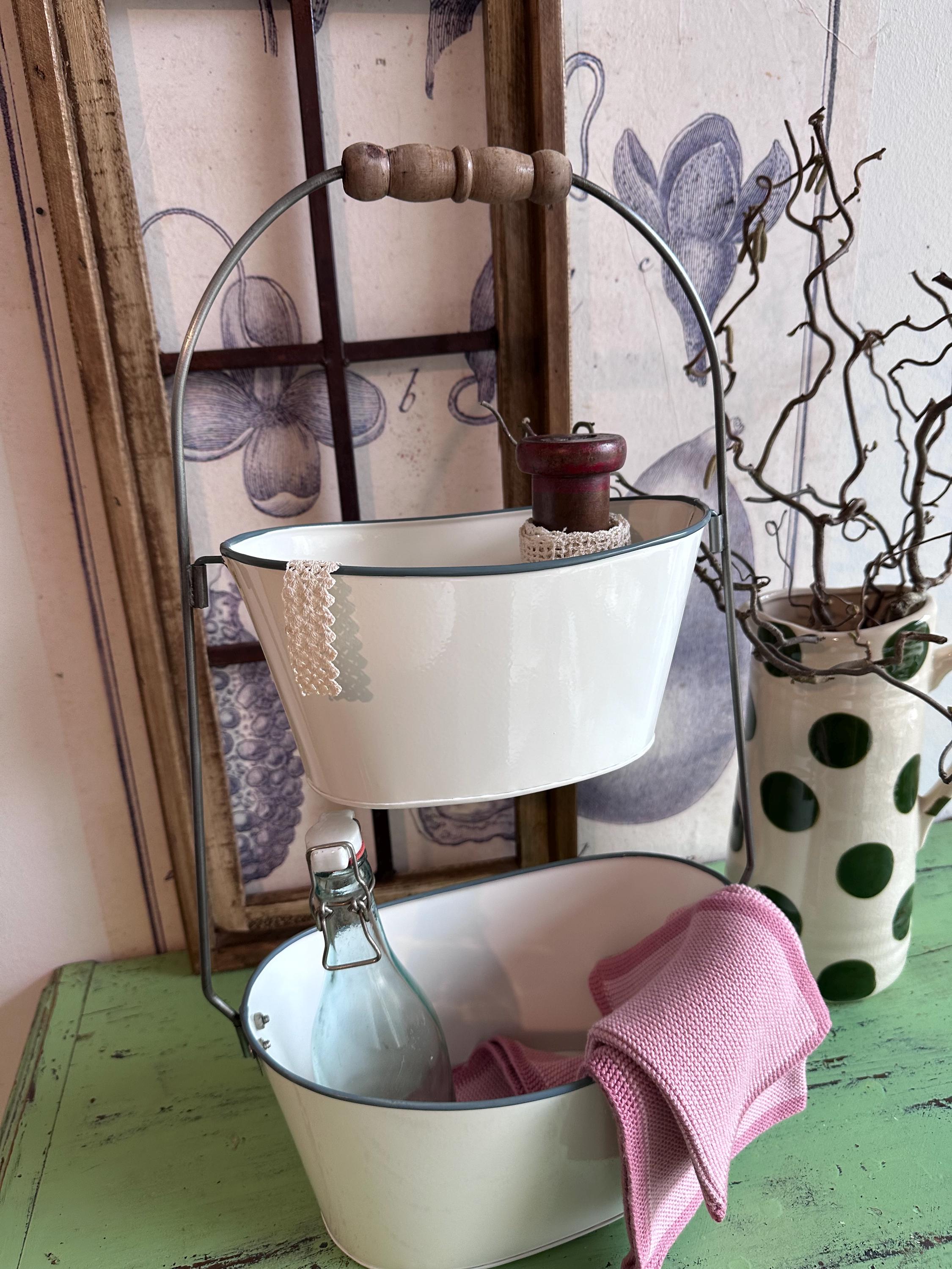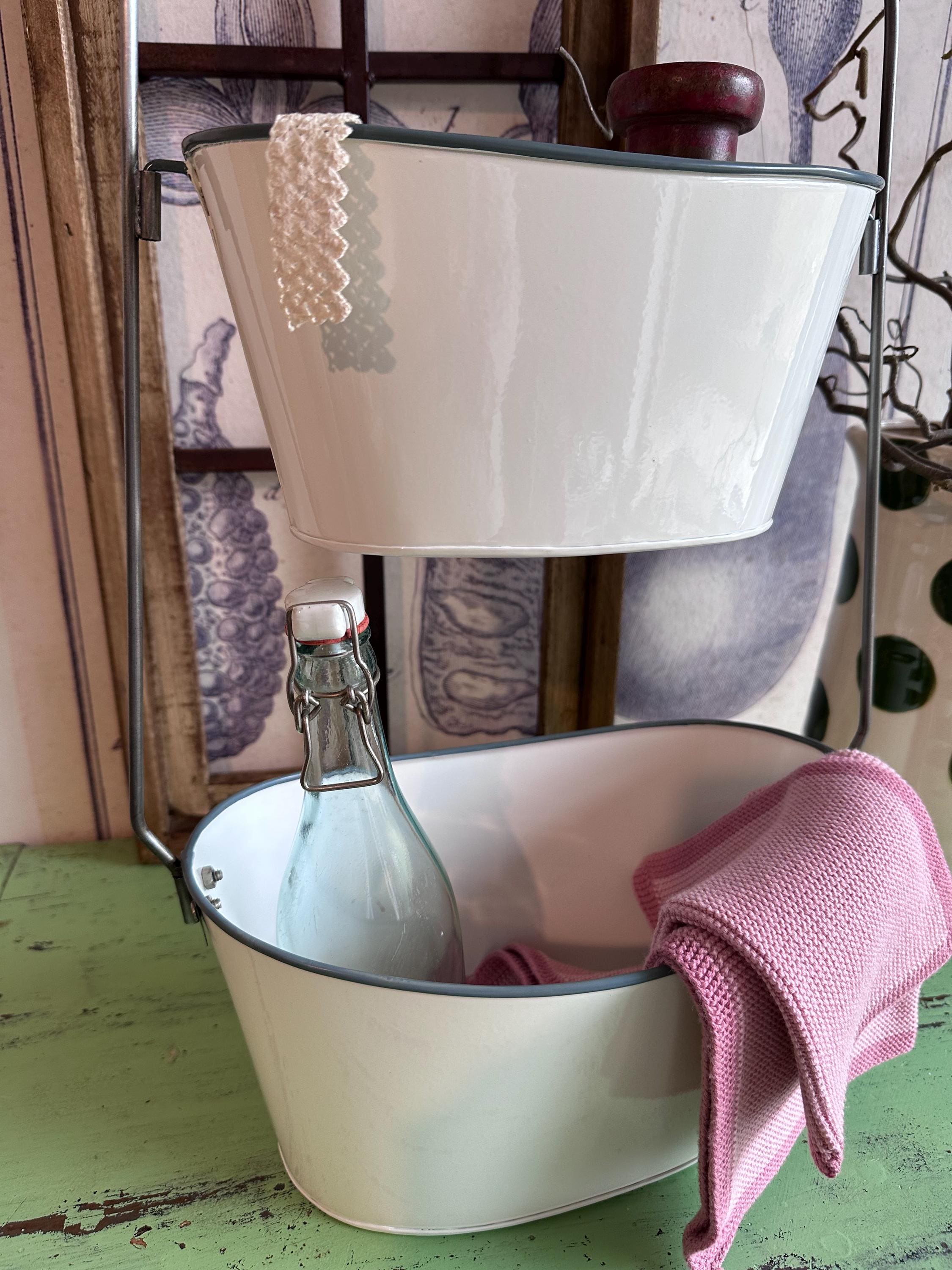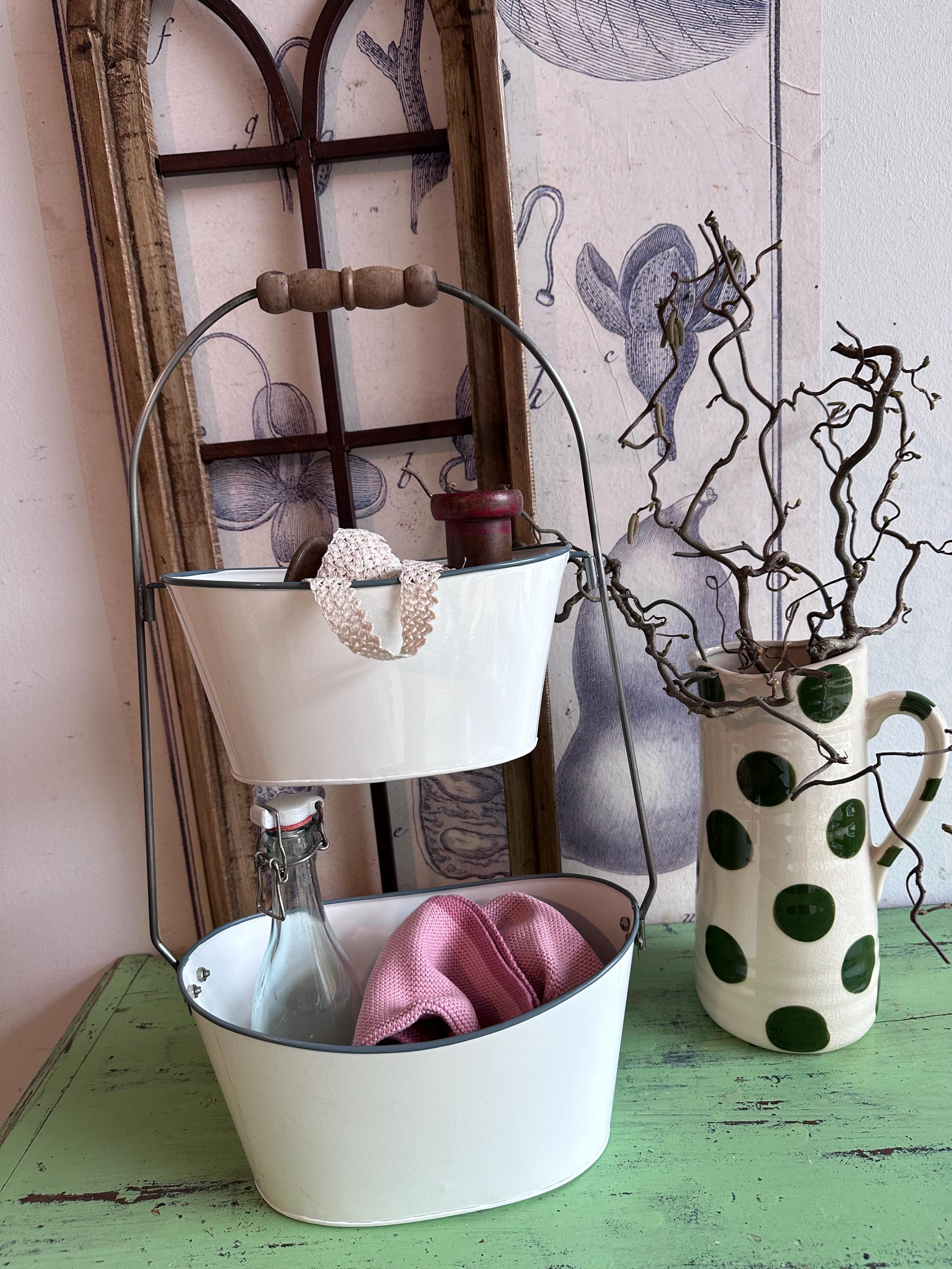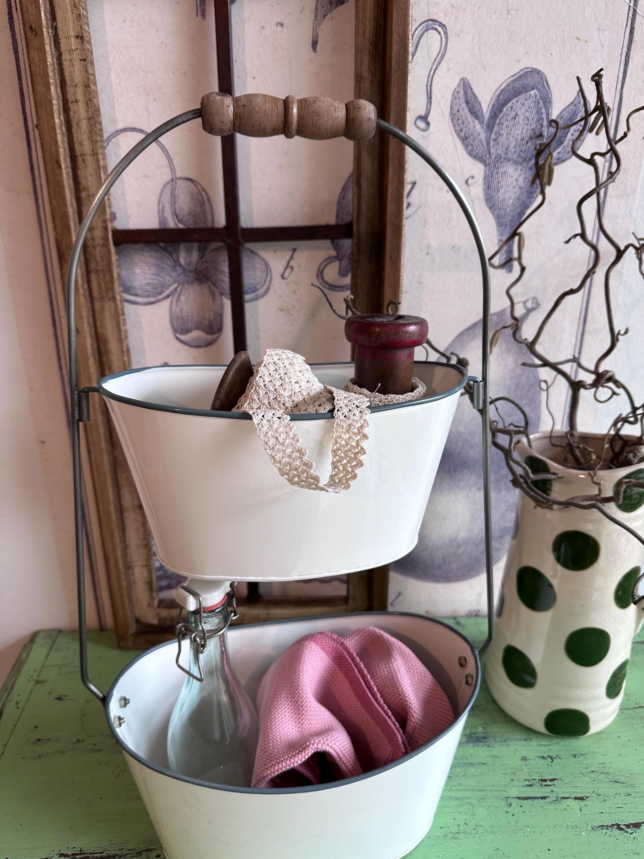 White enamel soap dishes on 2 levels - a small organizational aid for indoors or outdoors - but not only soap can be stored in them - floral decorations can also be arranged effectively in them ❤️