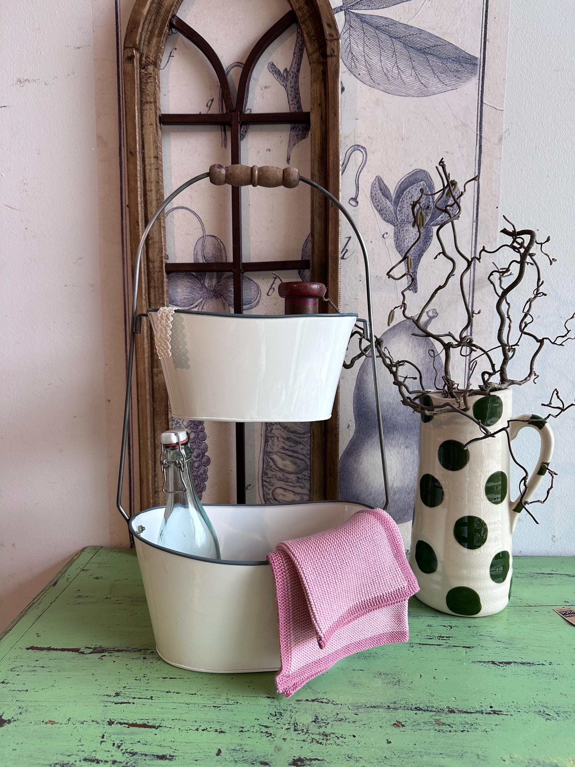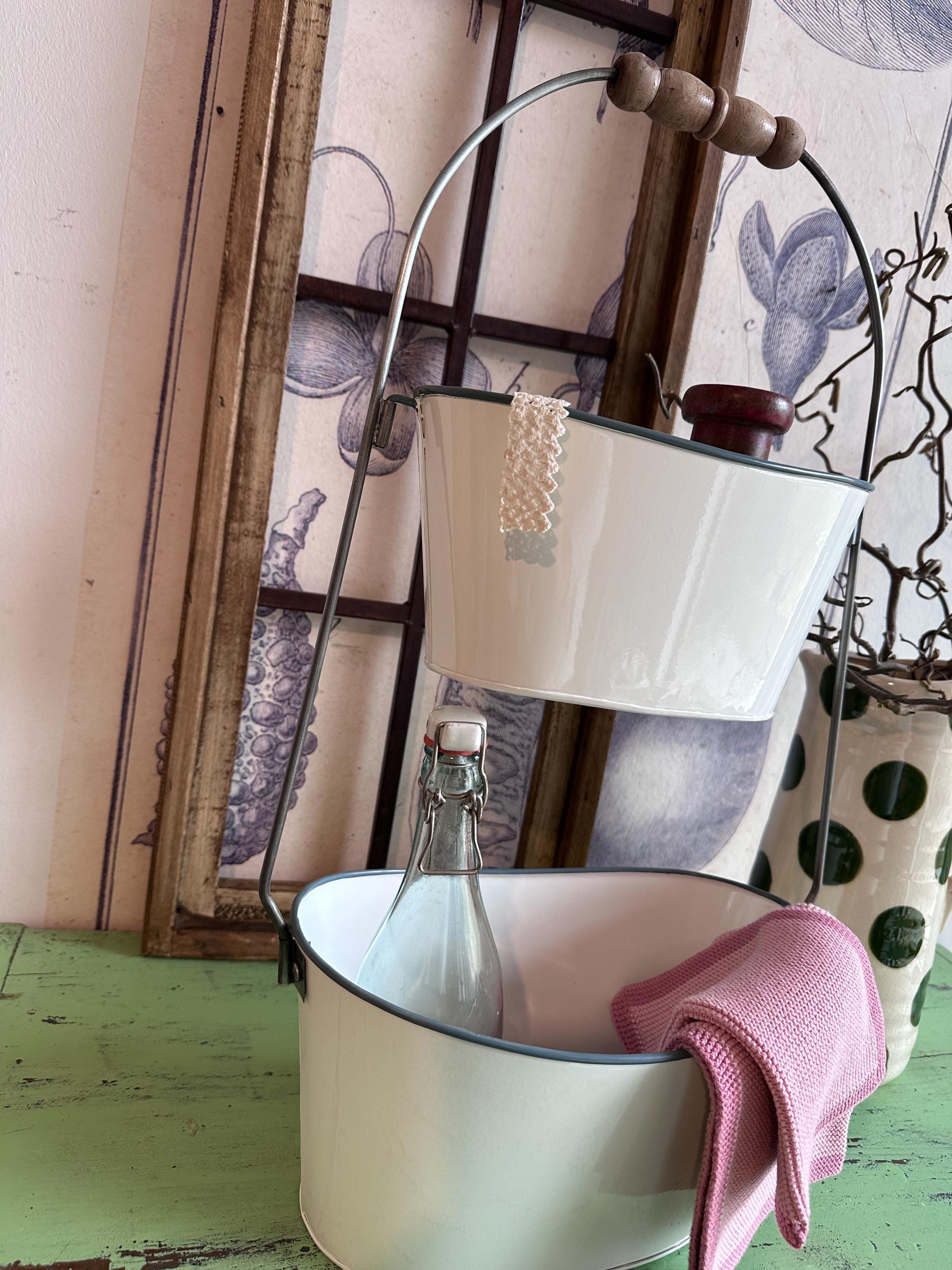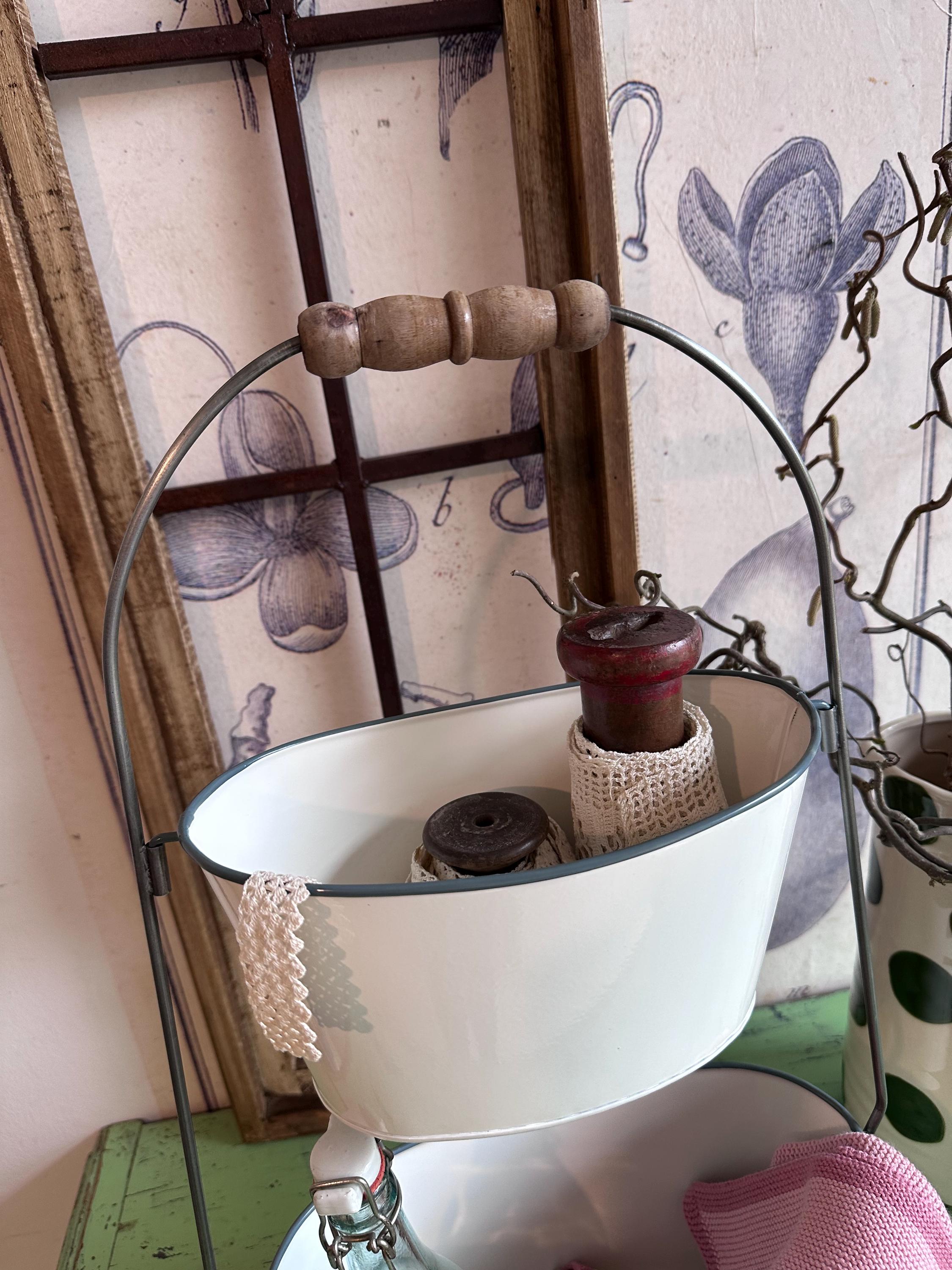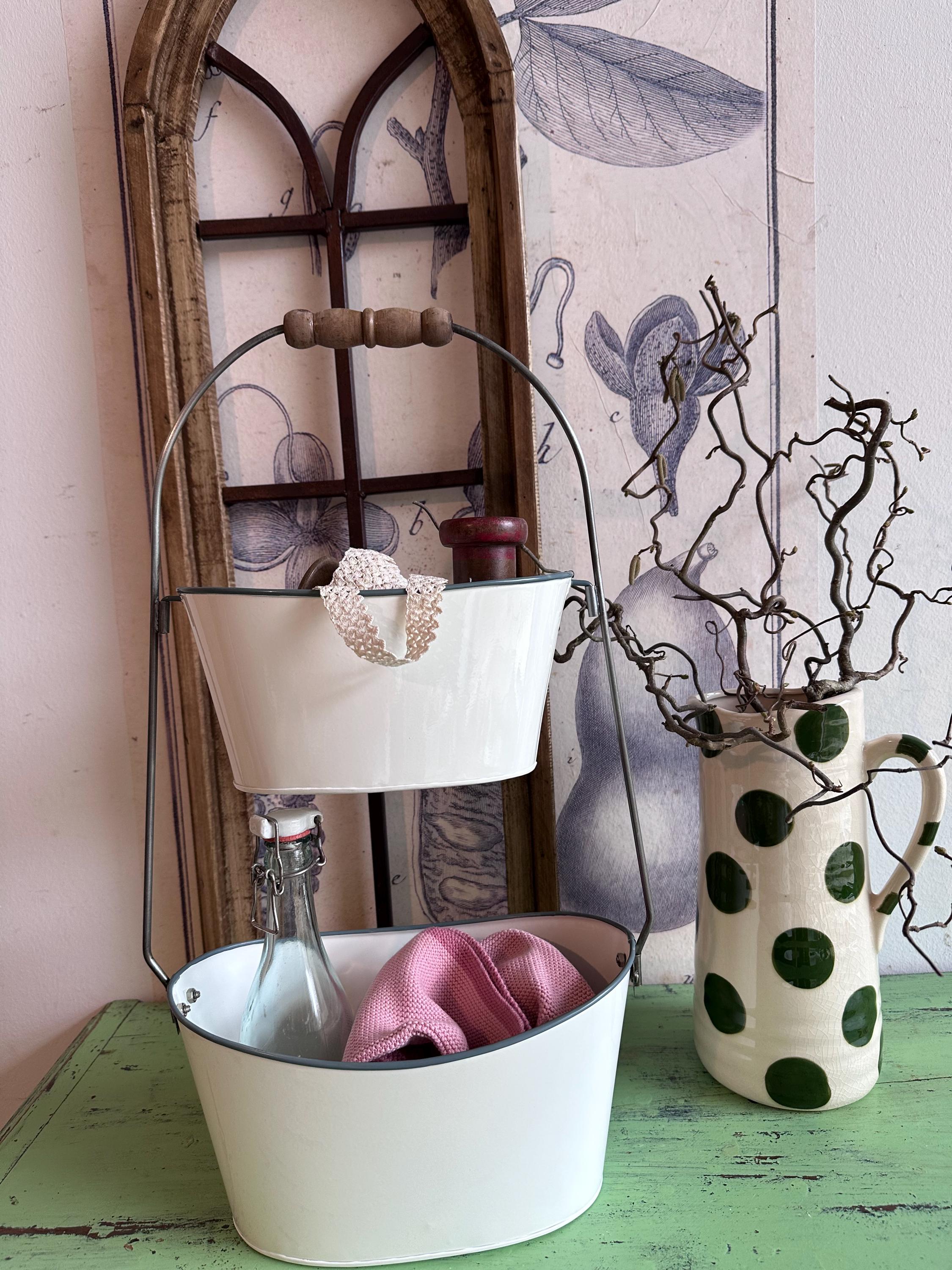 White enamel soap dishes on 2 levels - a small organizational aid for indoors or outdoors - but not only soap can be stored in them - floral decorations can also be arranged effectively in them ❤️
