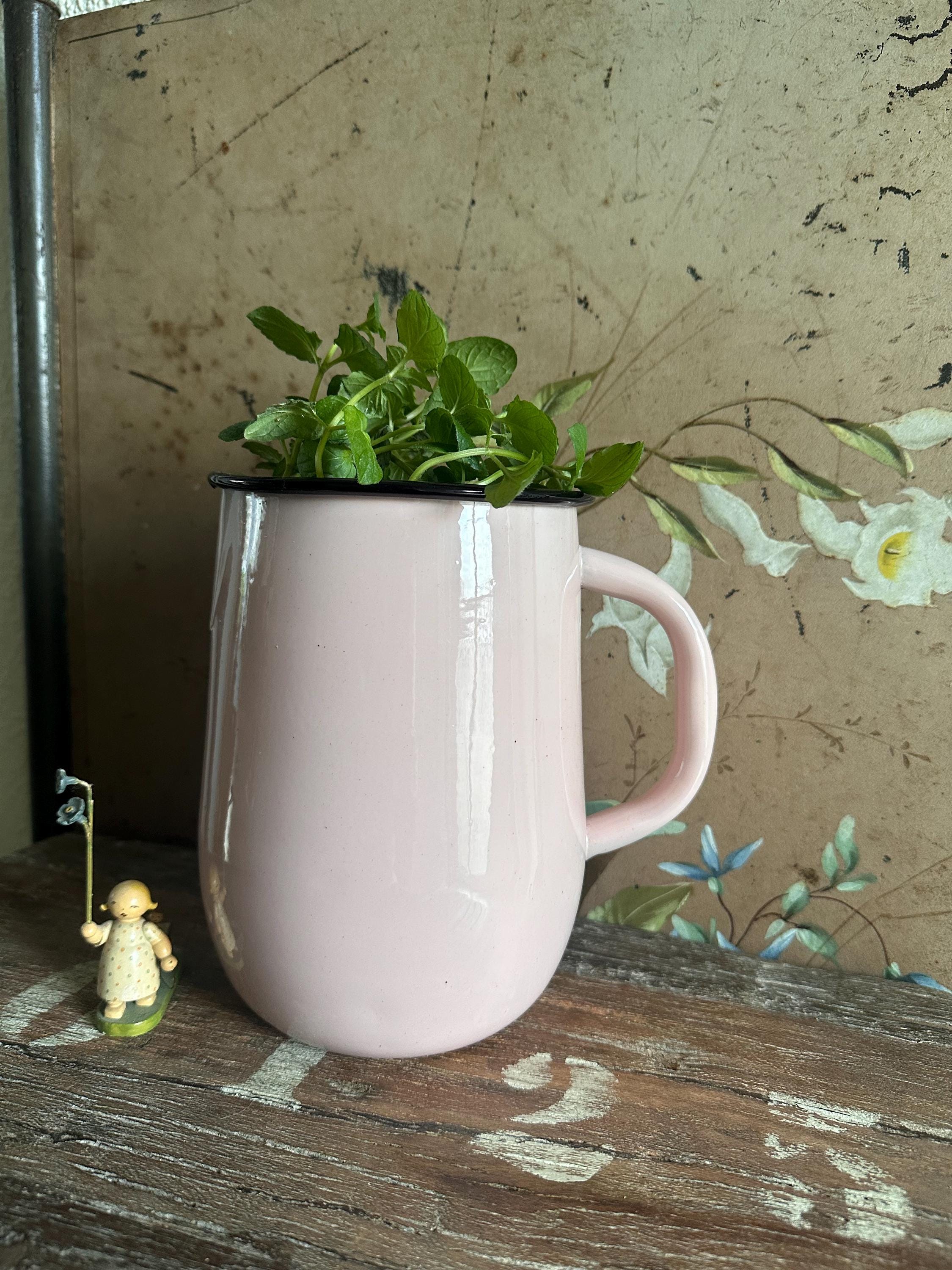 An enamel jug modeled after old originals in an old rose color... it brings that vintage touch to your kitchen - everything can be used for hot and cold drinks, so these beautiful vintage items not only look fantastic, but are also functional - everything comes from the Strömshaga series by a Swedish company for indoor design inspired by bygone eras â¤ï¸
