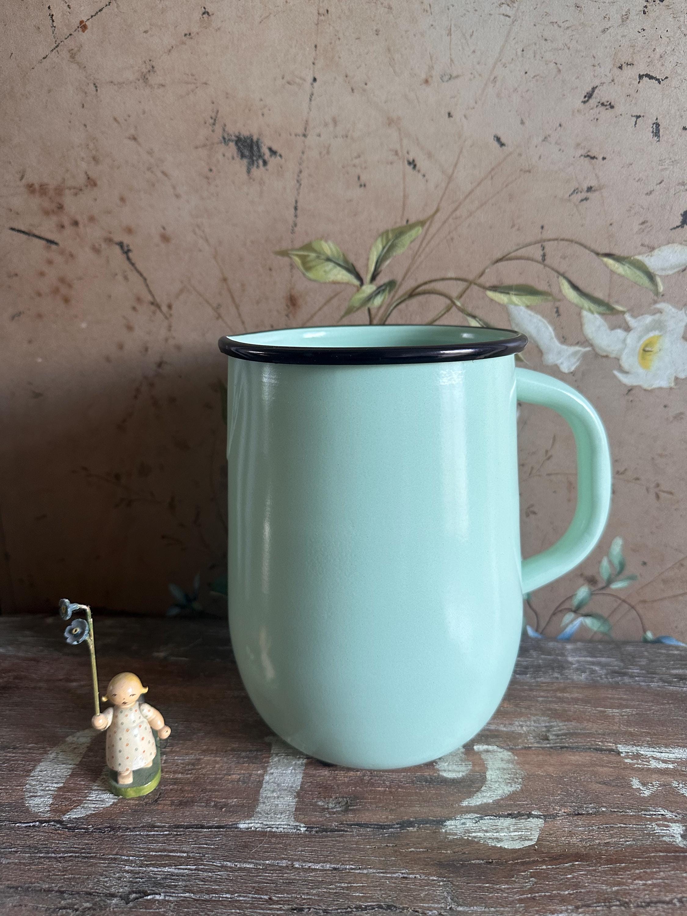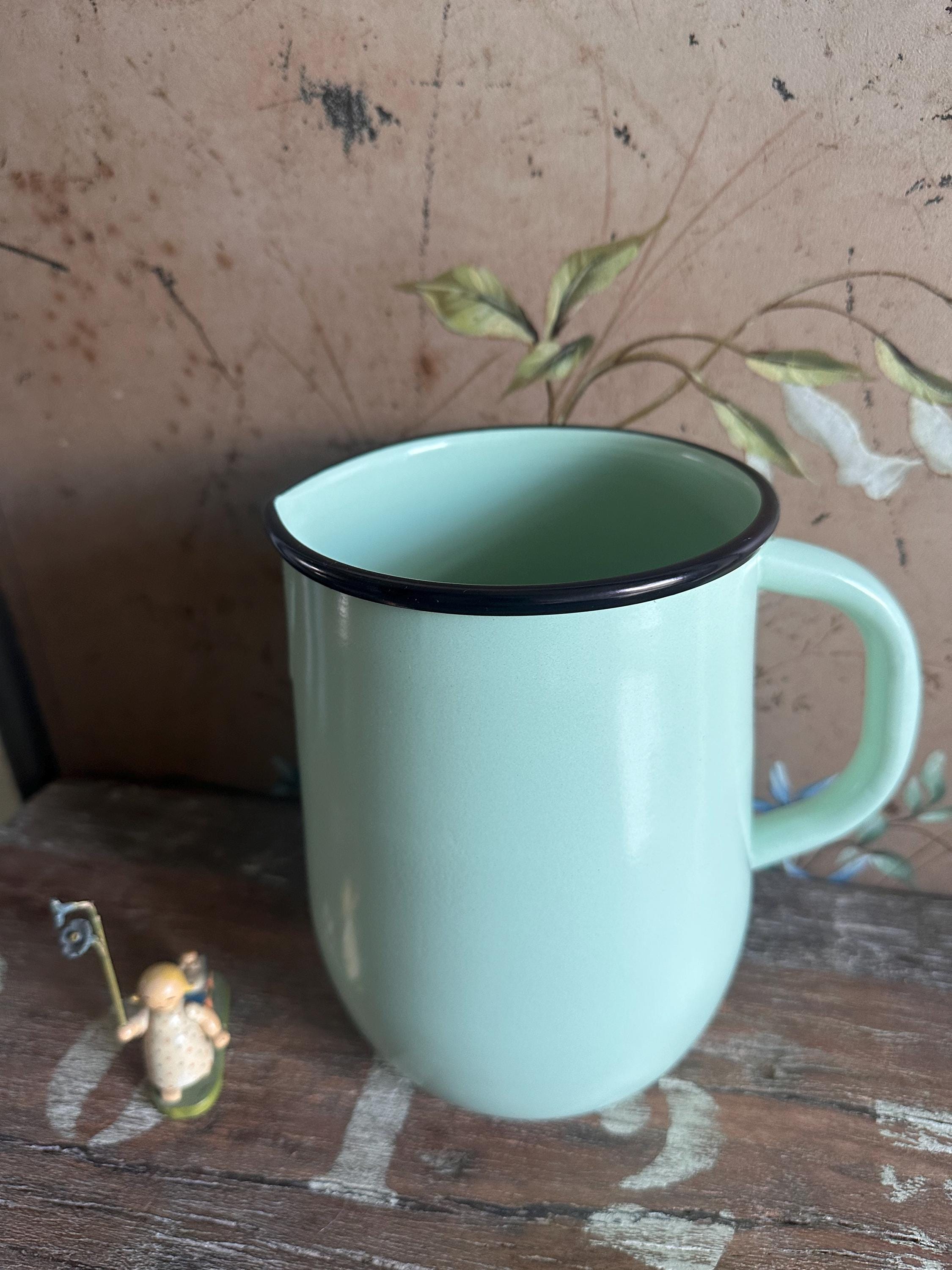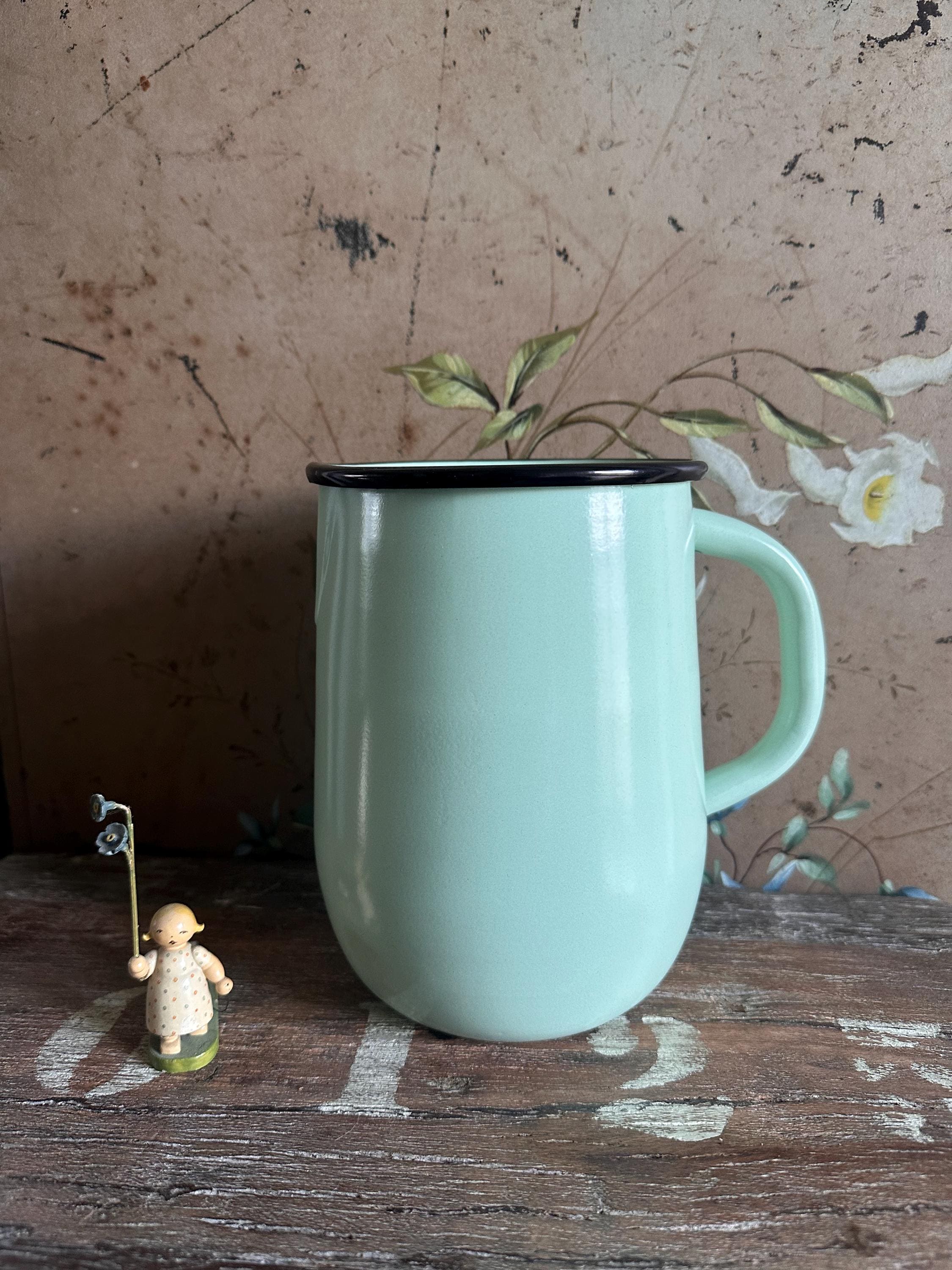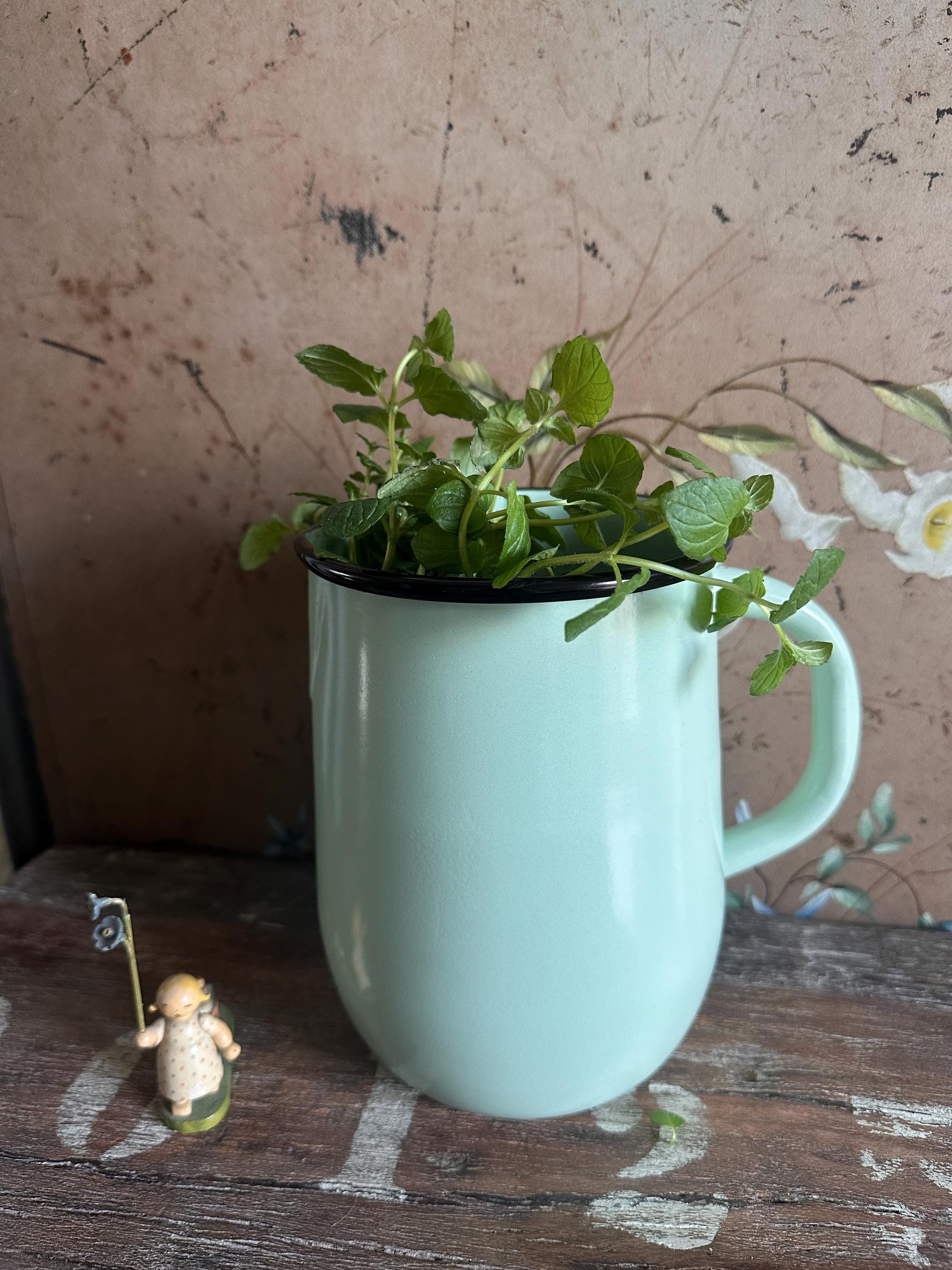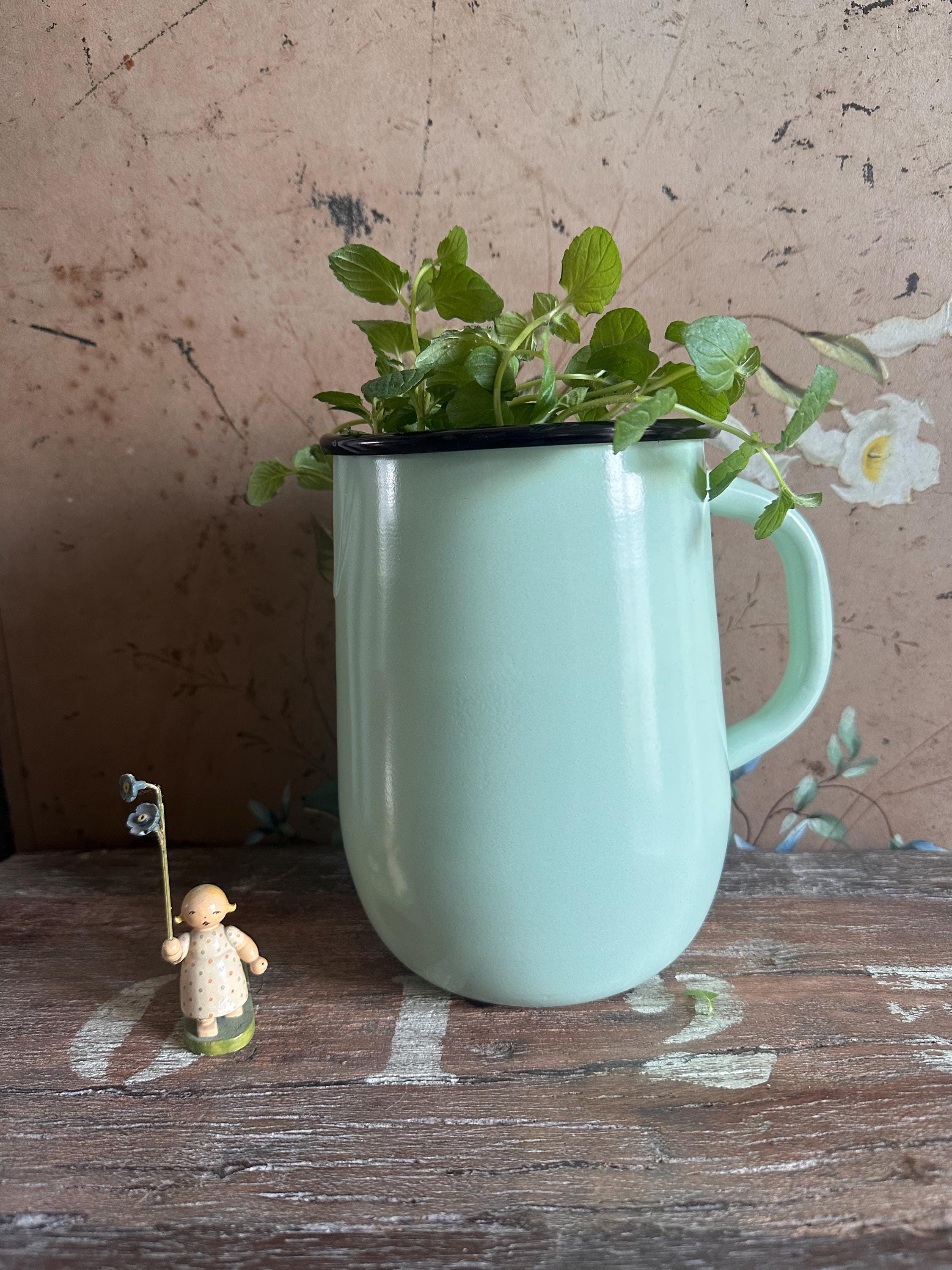 An enamel jug modeled after old originals in a light, airy green… it brings that vintage touch to your kitchen – perfect for hot and cold drinks, so these beautiful vintage pieces not only look fantastic but are also functional – all from the Strömshaga series by a Swedish indoor design company inspired by bygone eras ❤️